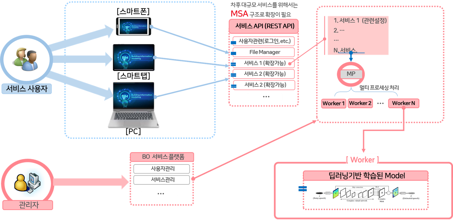 - Inference를 랩핑하여 REST API 기반 AI 서비스 Back-End 구축 및 서비스 배포