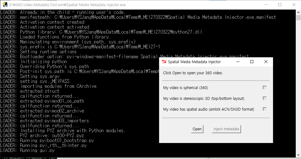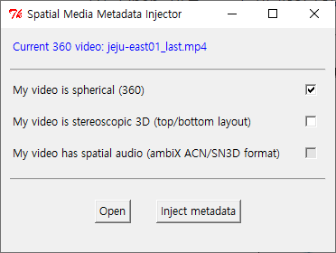 STEP 2: Spatial Media Metadata Injector 프로그램을 실행