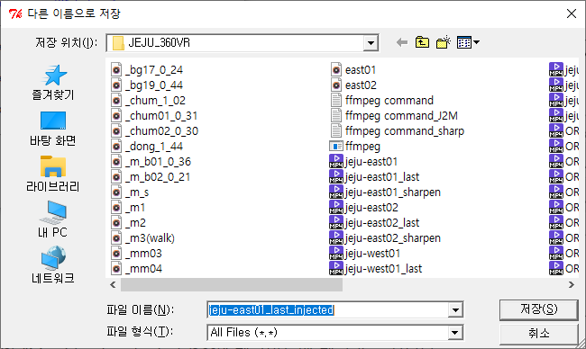 (4) "Inject metadata" 버튼을 클릭하면 자동적으로 "파일명_injected" 파일이름이 지정되고, "저장" 버튼을 클릭하면 약간의 시간이 소모되어 "파일명_injected" 동영상이 생성된다.