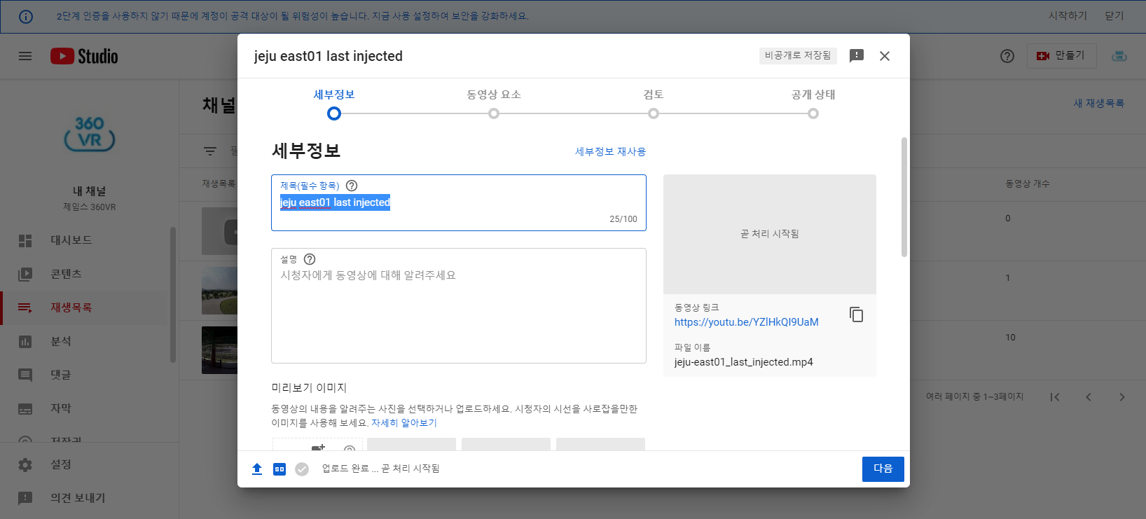 촬영된 360VR 동영상을 YouTube에 바로 업로드 할 수 없다. 어떤 절차를 거쳐야 하는가?