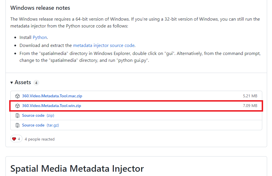 STEP 1: Spatial Media Metadata Injector 프로그램을 다운받는다.